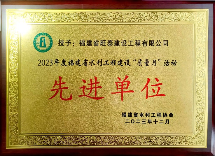 热烈庆祝我司于2023年度福建省水利工程建设“质量月”活动中获得先进单位称号。
